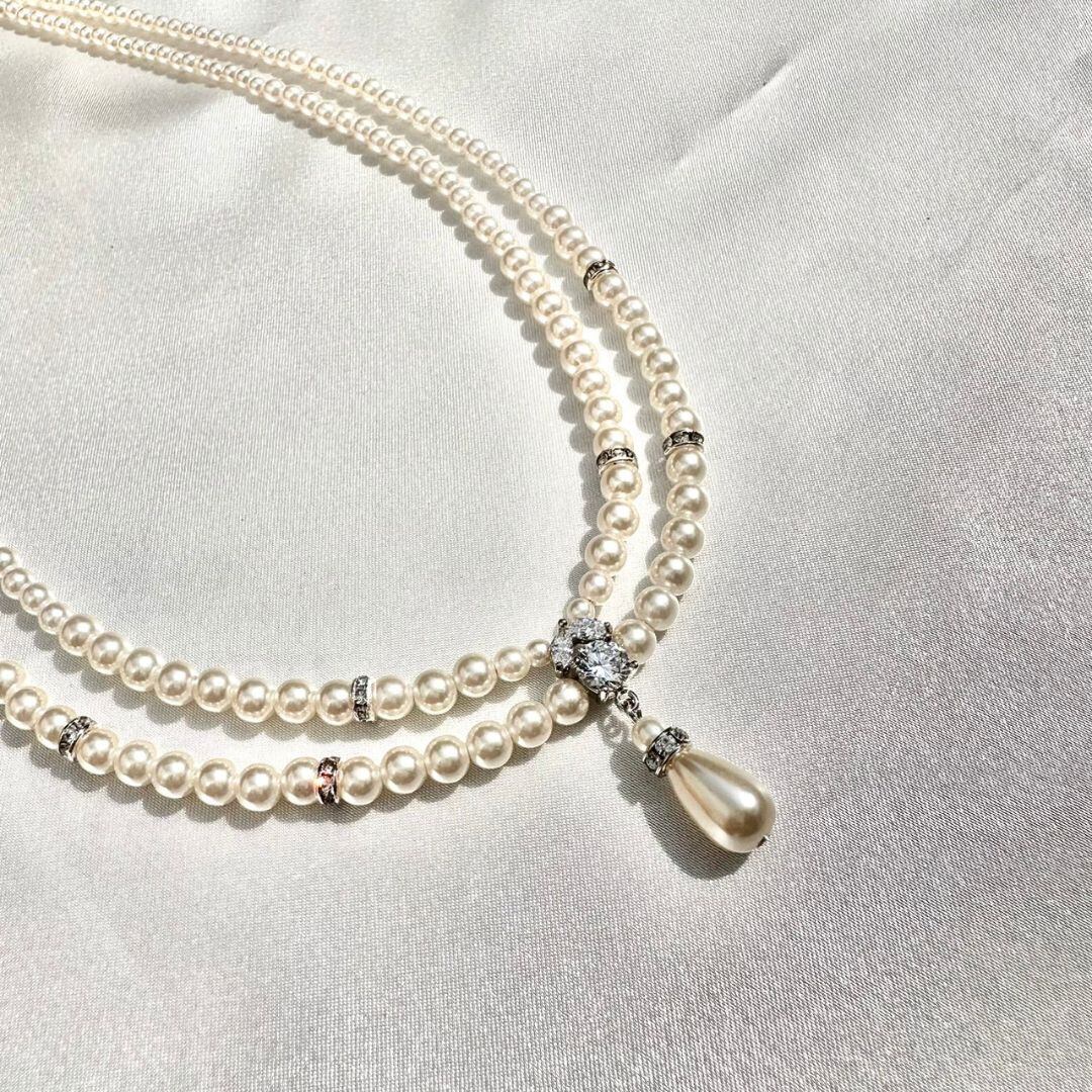 華麗な女性らしさのある小ぶりの2連パールが品よく