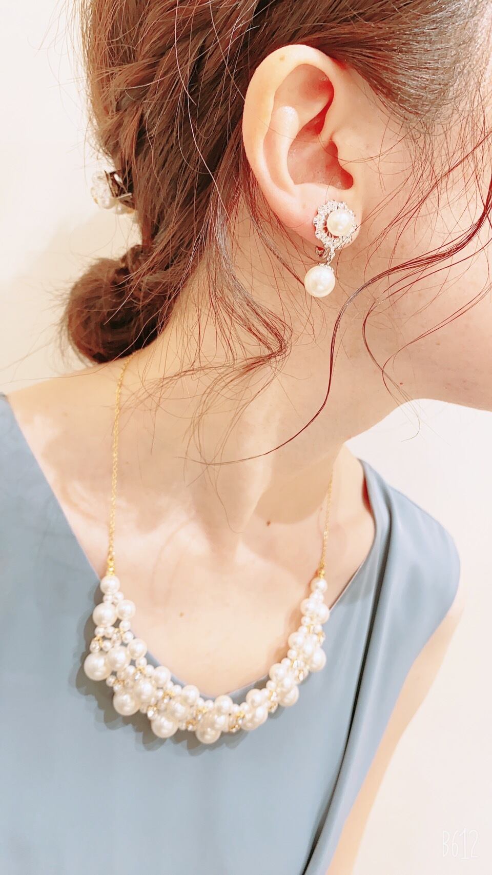 大きいパールと小さいパールを組み合わせたゴージャスなネックレス。