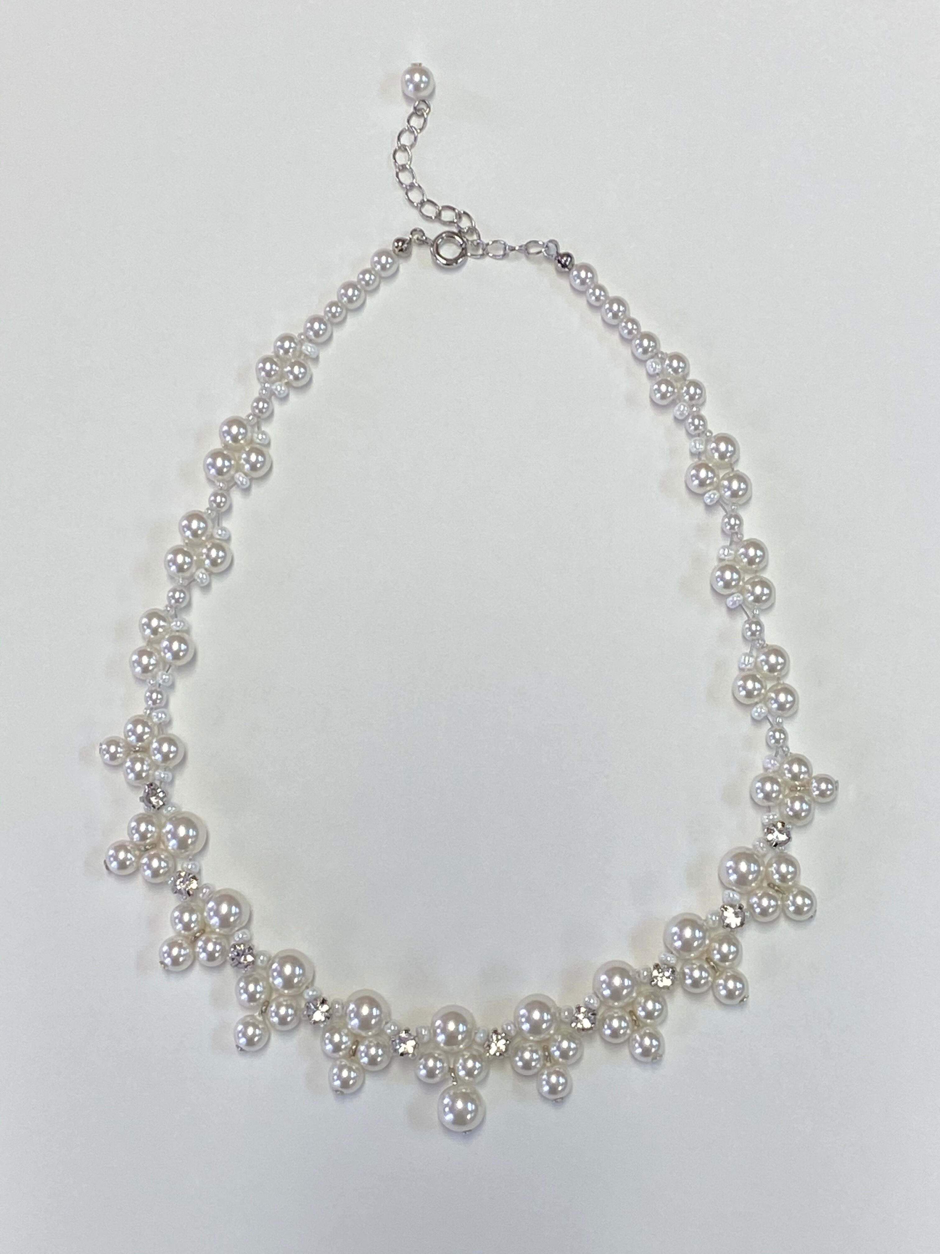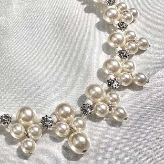 上品なパールとキラキラのラインストーンで組み合わされたネックレスは