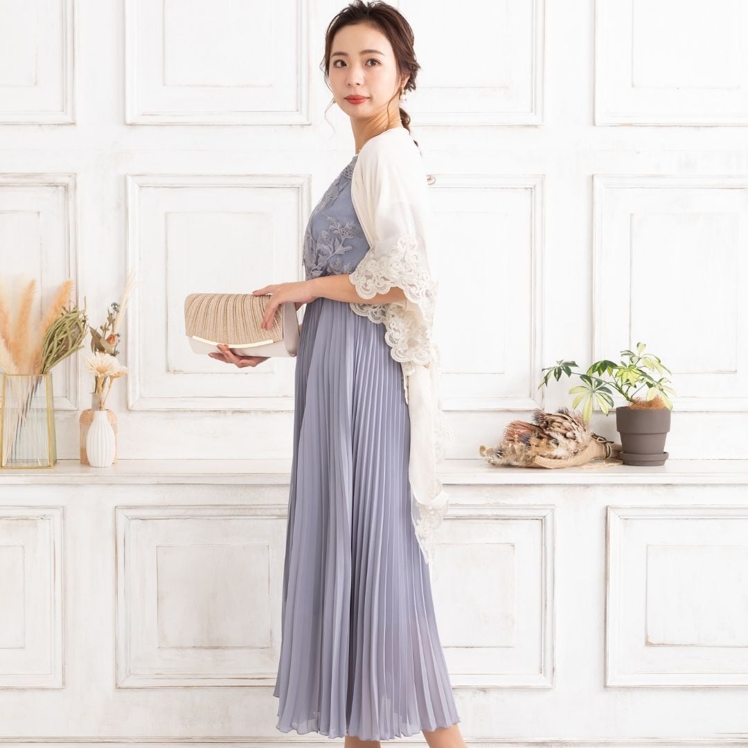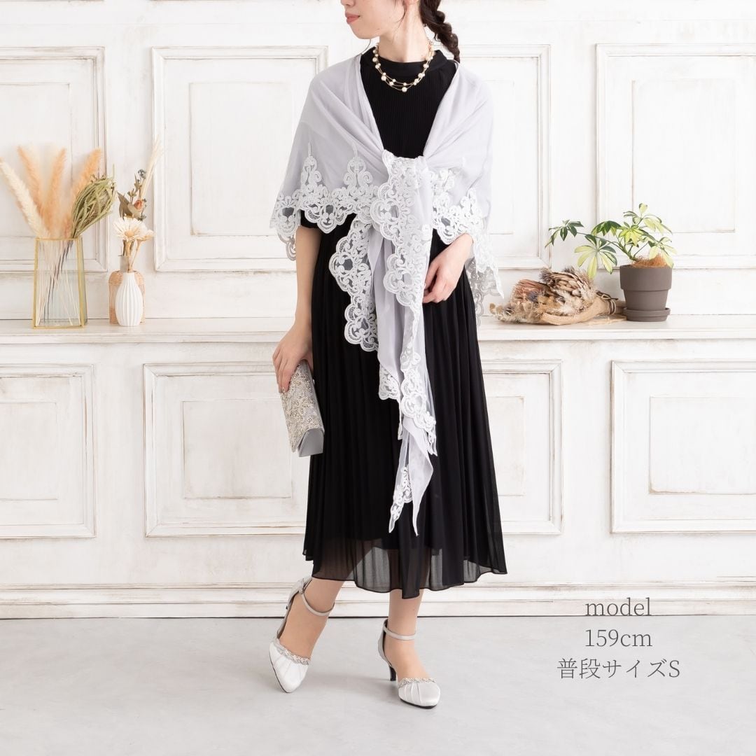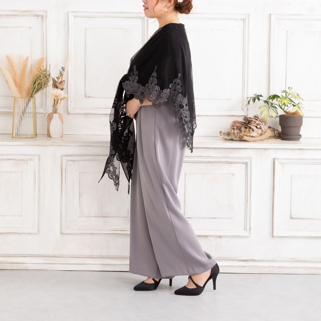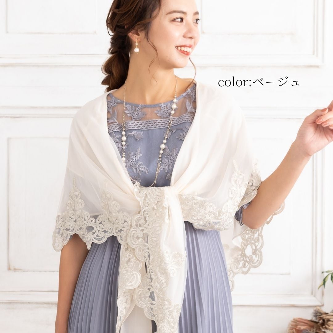 袖周りのラメ刺繍がドレススタイルをより華やかにしてくれる素敵ショール!