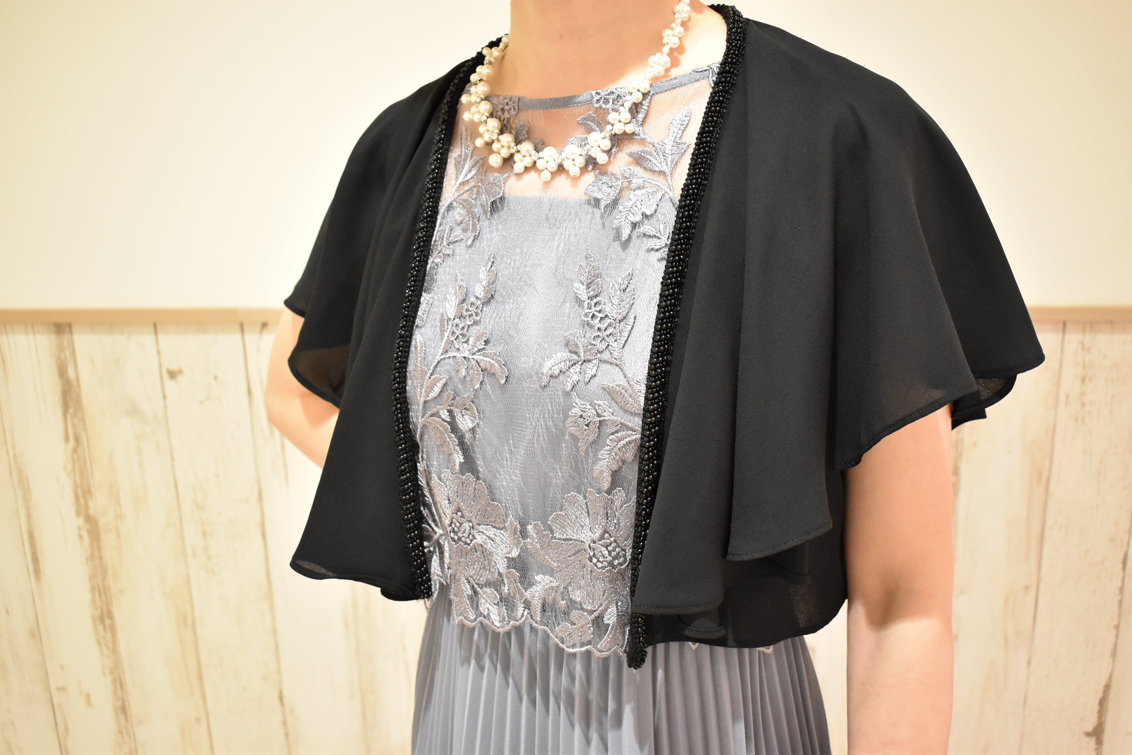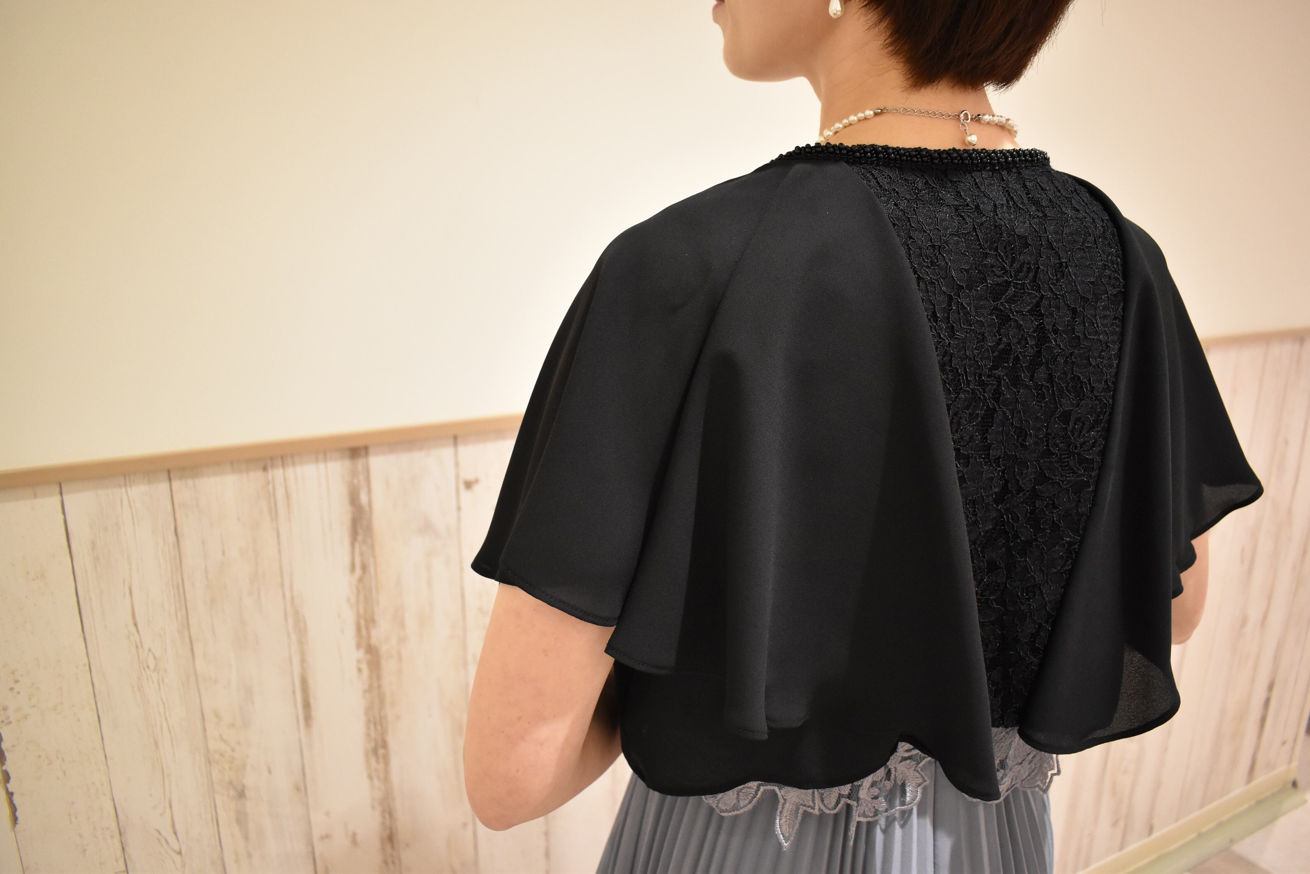 肩に切替がなくスッキリとしたシルエットのケープ風のボレロ。