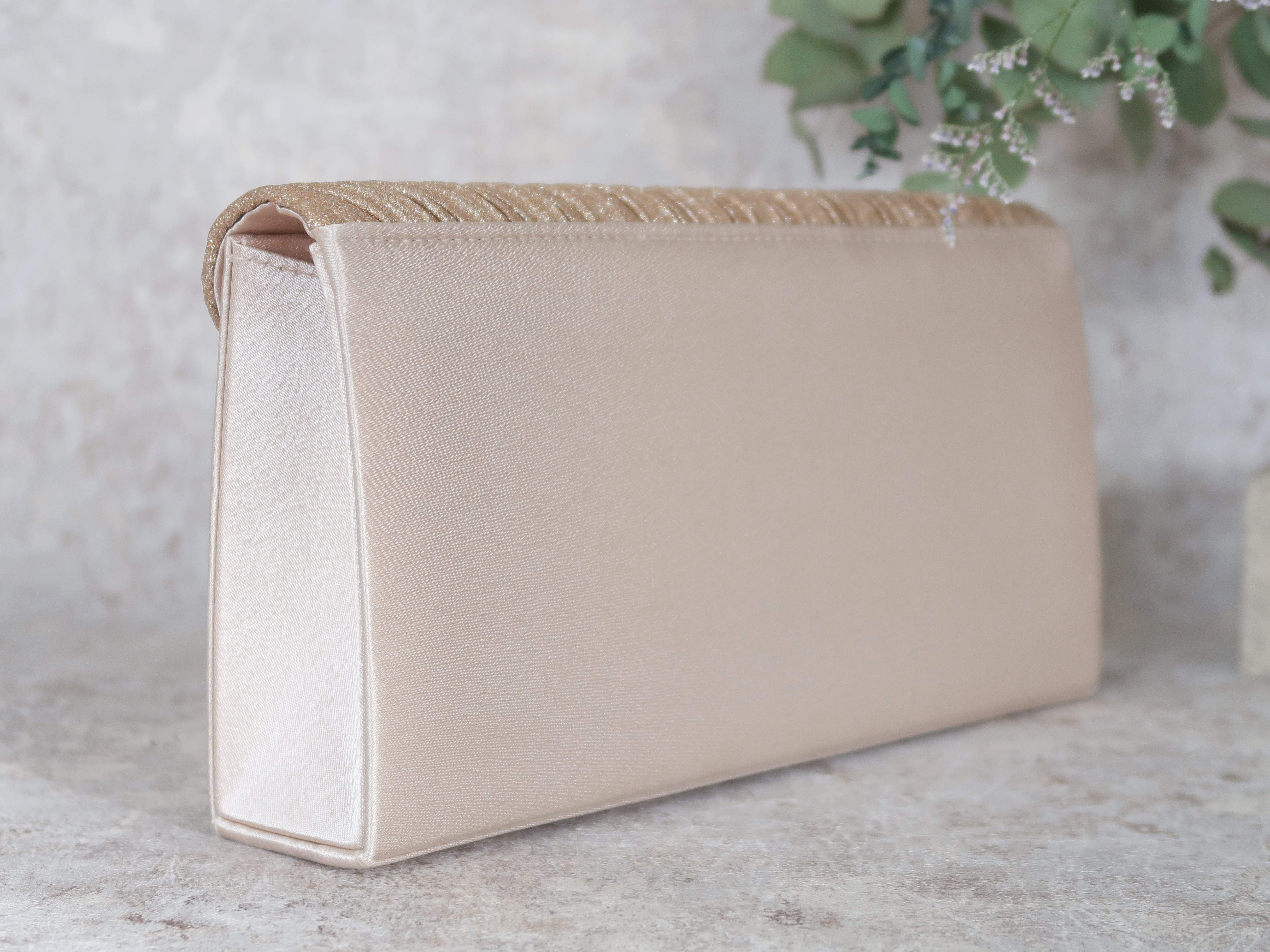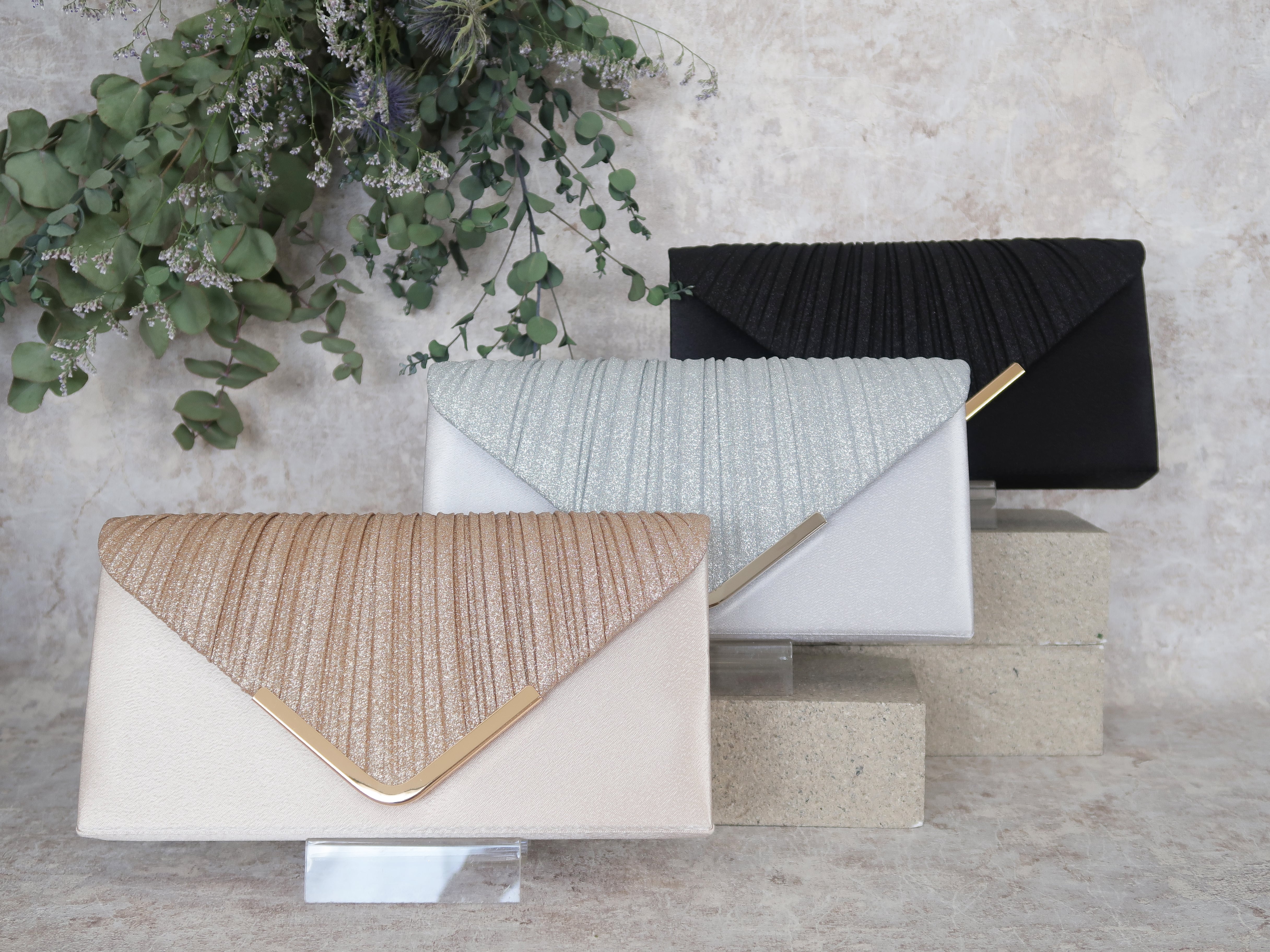 控えめな光沢のグリッターラメにプリーツがあしらわれており