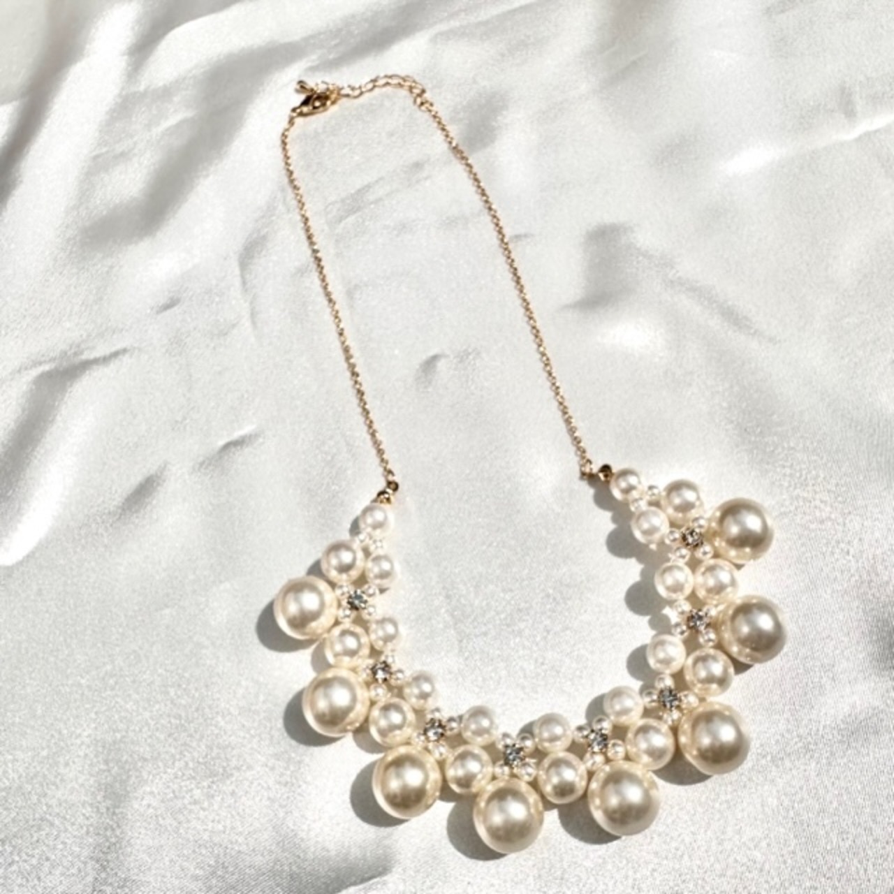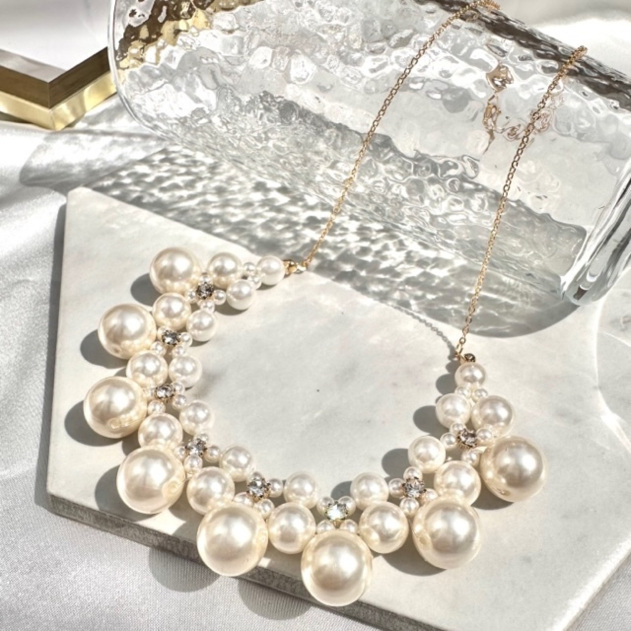 華やかなパール&ビジューネックレスはデコルテだけでなく