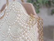 バッグの前面にパールを散りばめた華やかでゴージャスなデザインです。