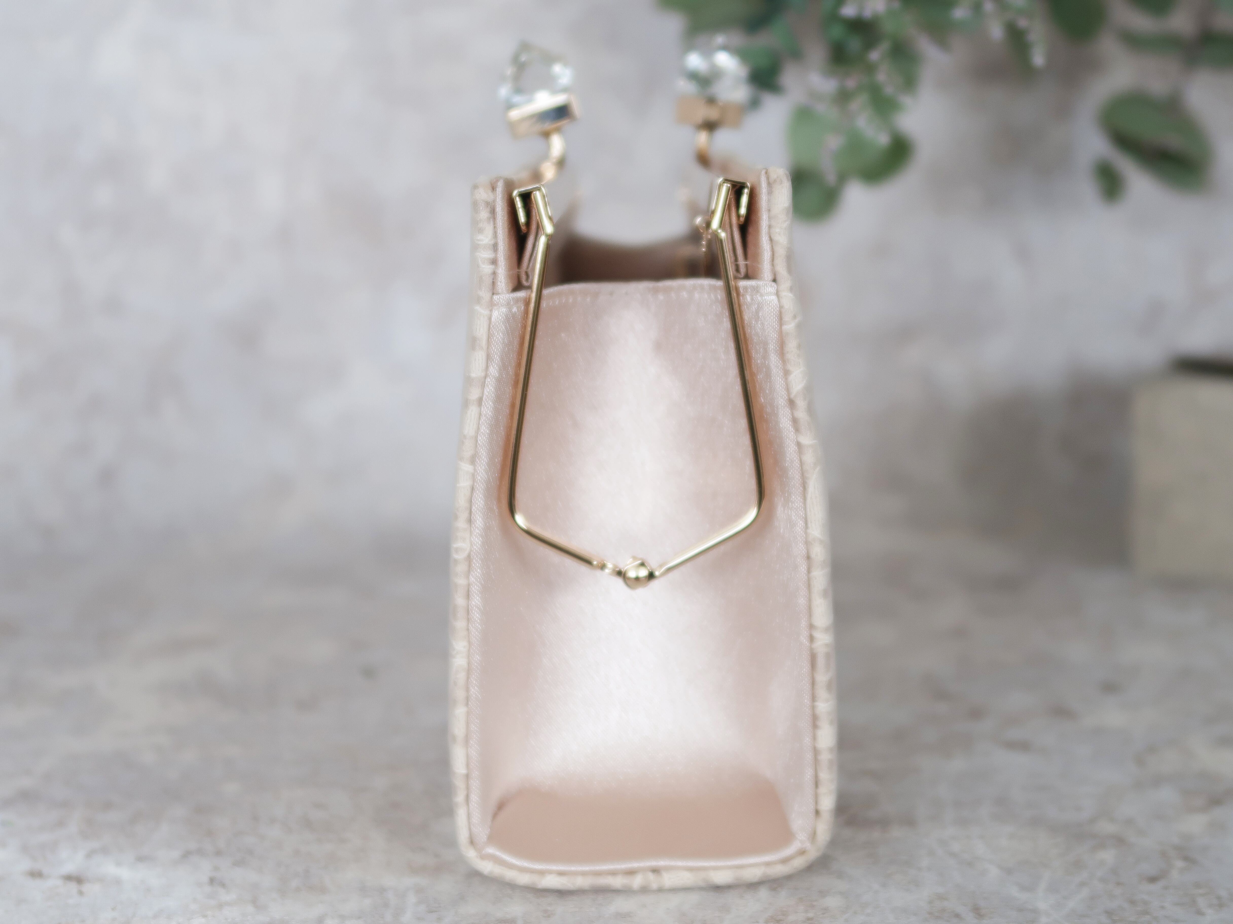 がま口部分のキラキラしたクリスタルビジューがワンポイントになってます。