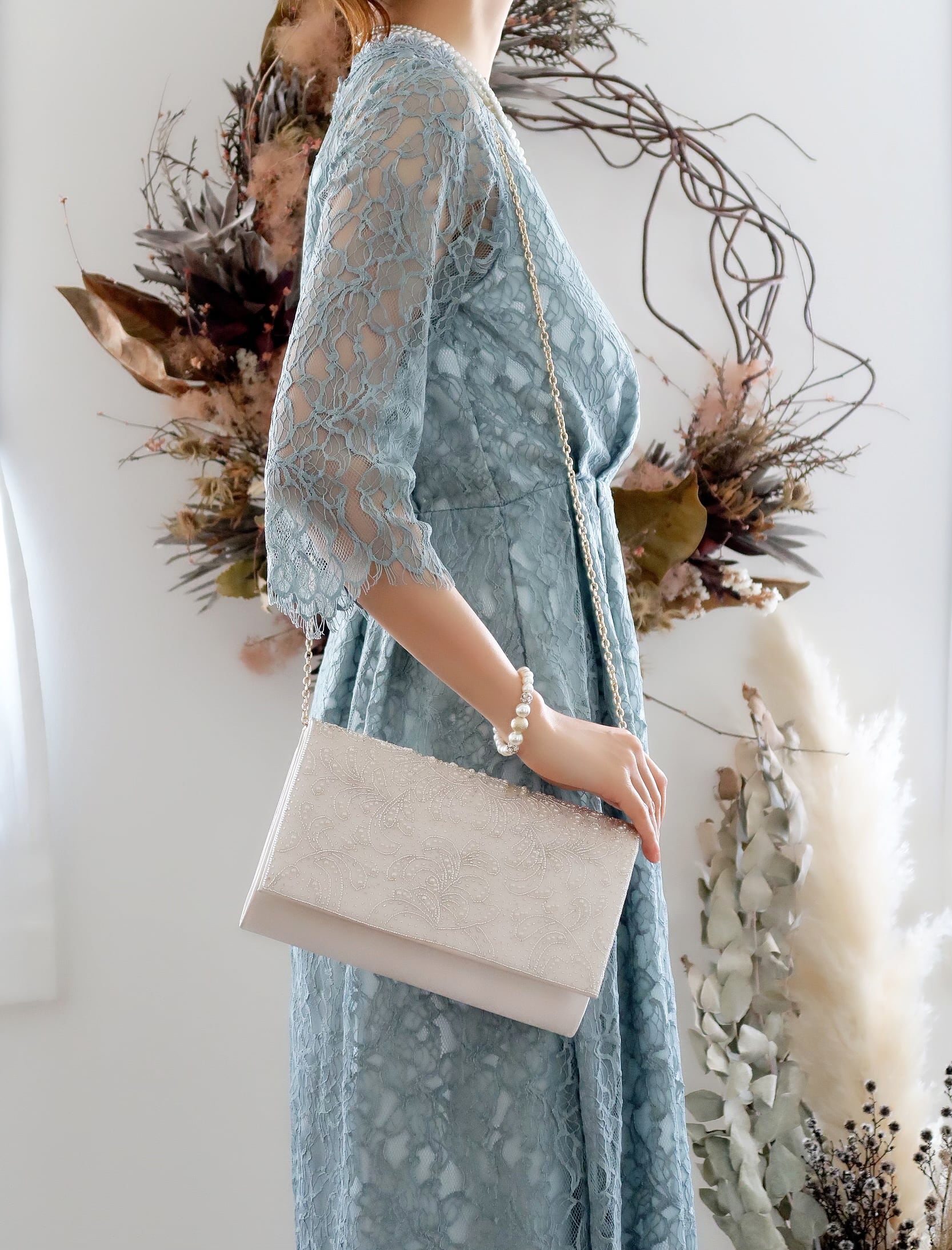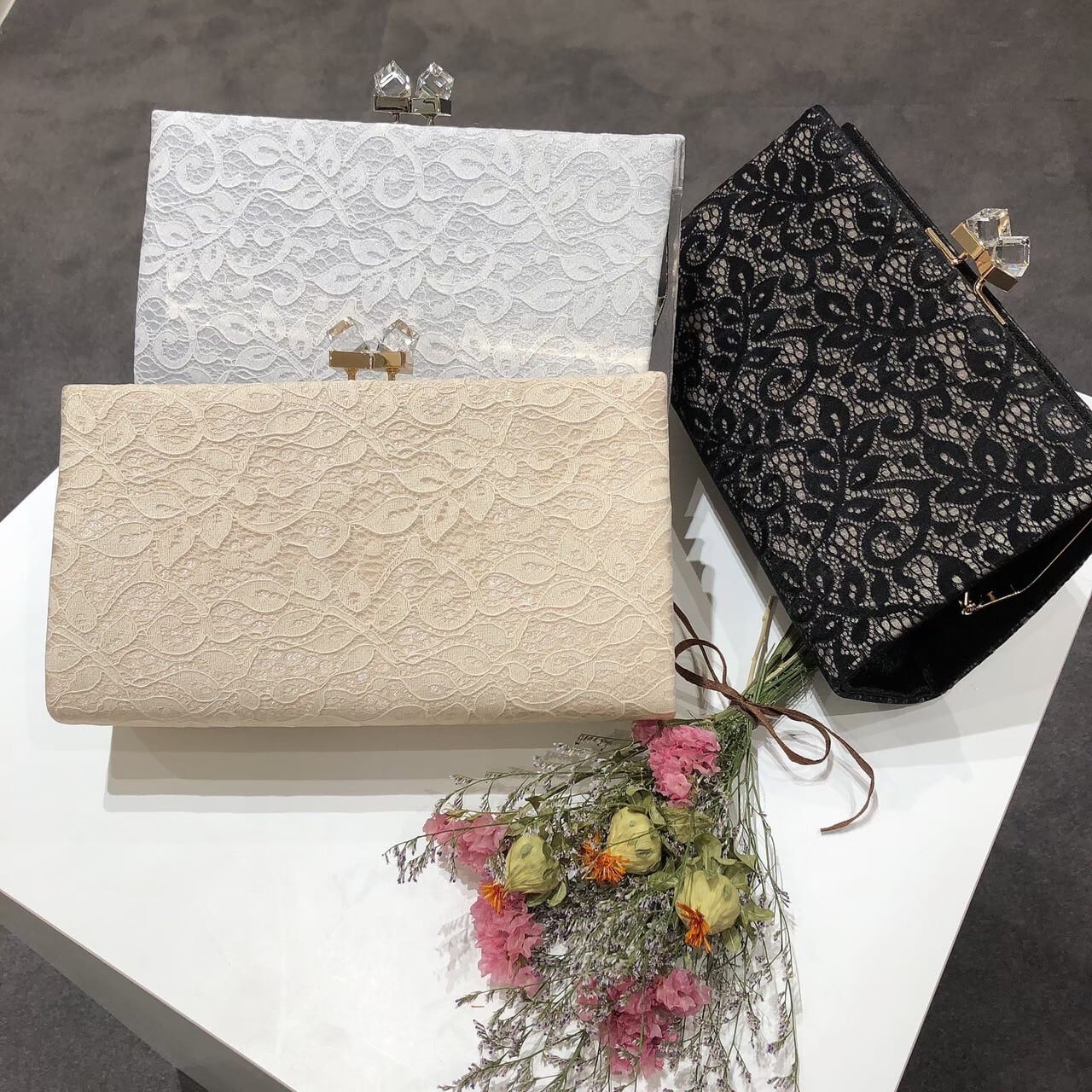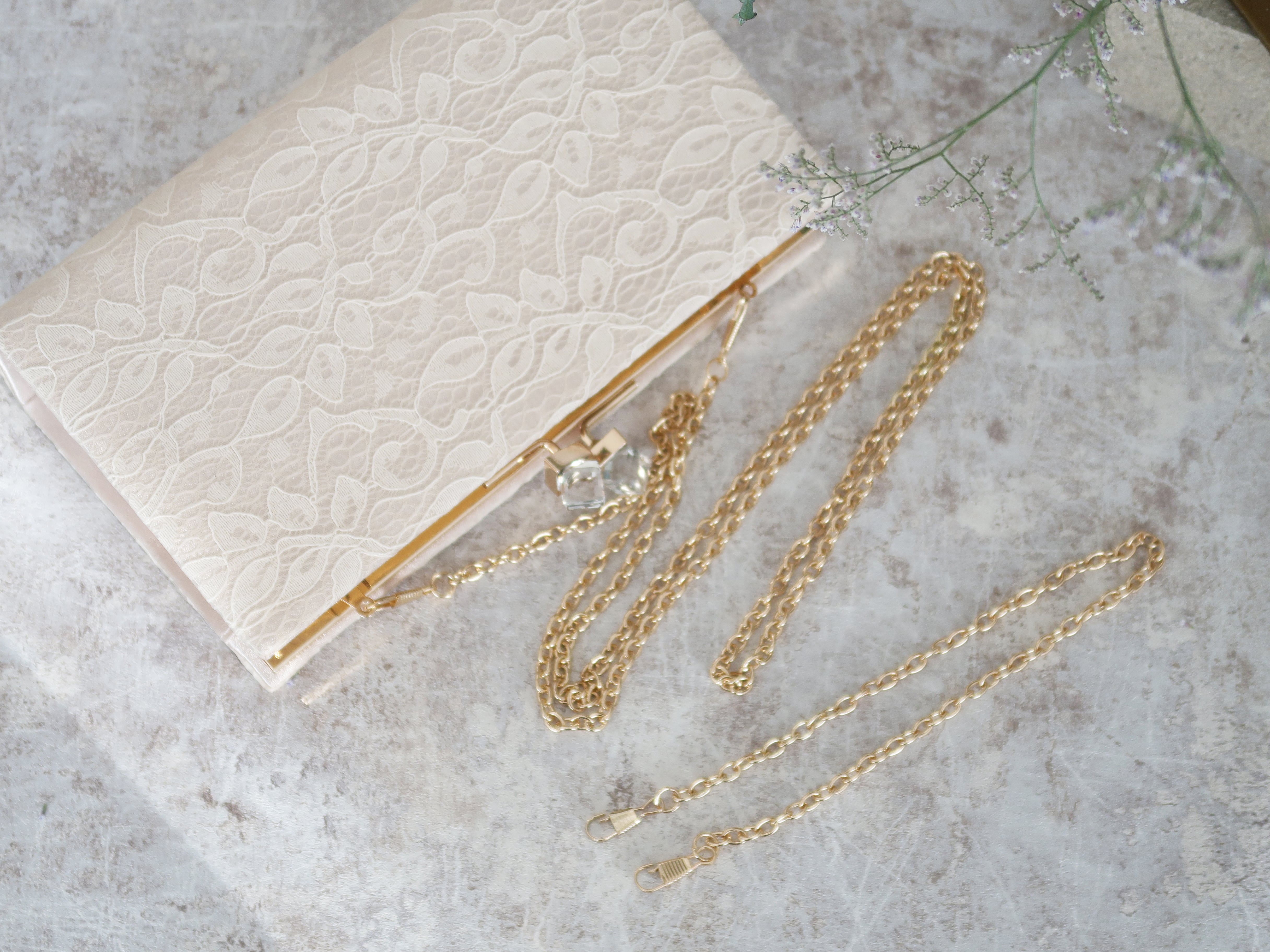 ヨーロピアン調のレースを使ったハードタイプのクラッチバッグです。