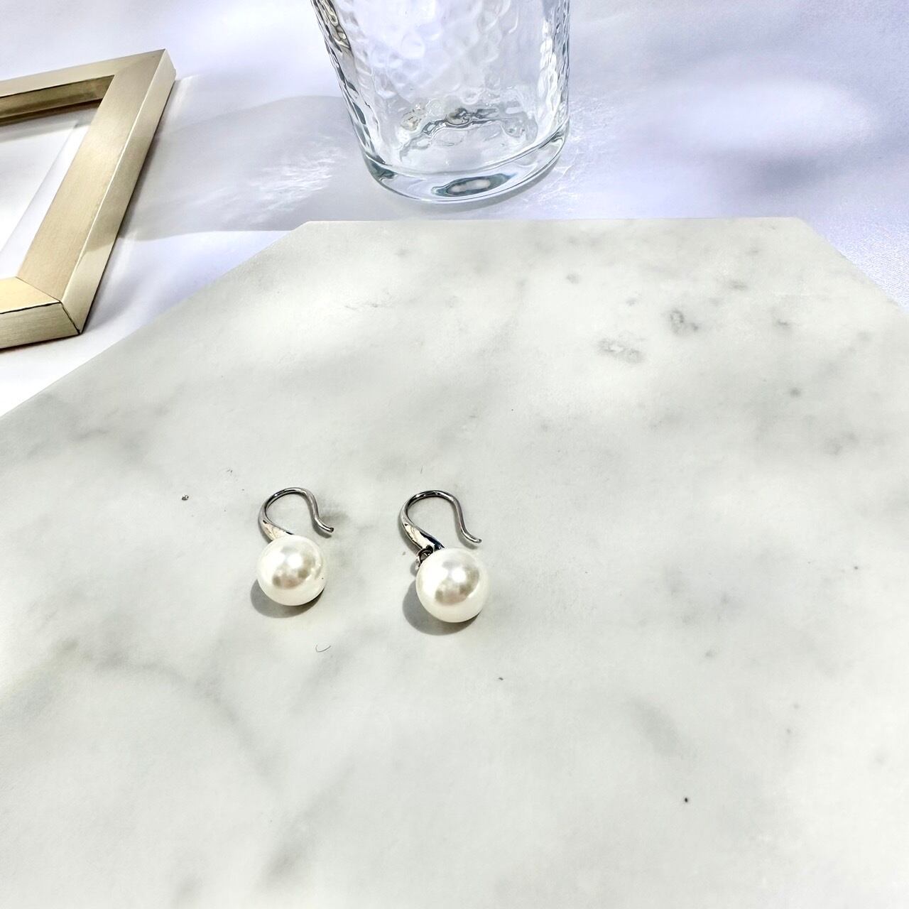 シンプルなひと粒のパールピアス。コーディネートに馴染むサイズ感のパールは、耳から1cm程度でゆらゆらと揺れてさり気なく目を引くポイントに。シンプルだからこその潔さが印象的で大人の女性を演出してくれます。曲線が美しいフックは女性らしさを強調。フックタイプなのでピアスホールにかけるだけで簡単に着脱できます。華やかなレースワンピースの引き立て役やスマートなパンツスタイルに合わせても◎