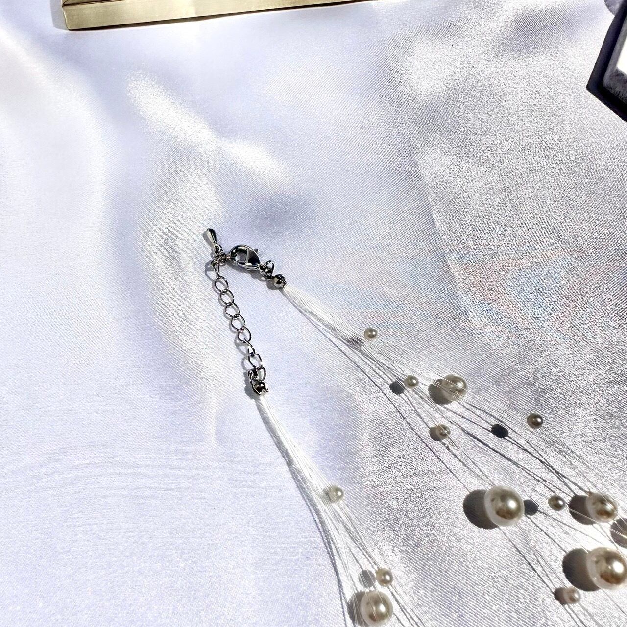 上品なパールのネックレスはいろんなテイストのドレスとも