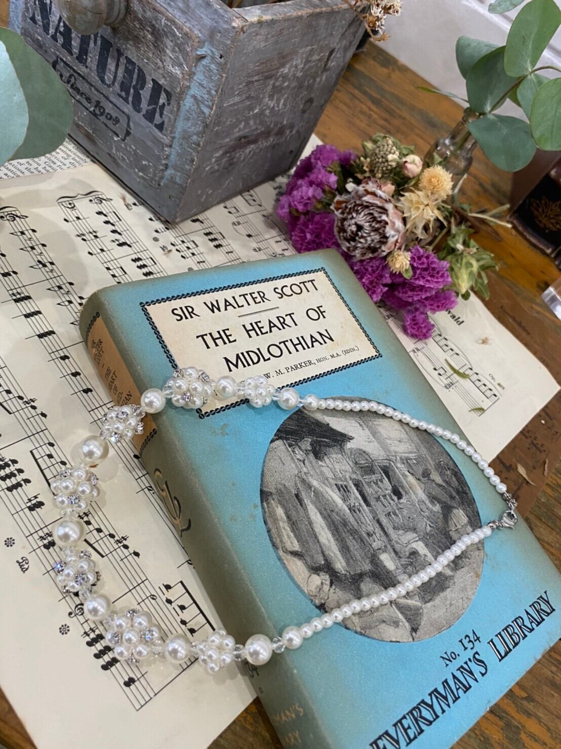 小粒のホワイトパールとラインストンで象られたモチーフが