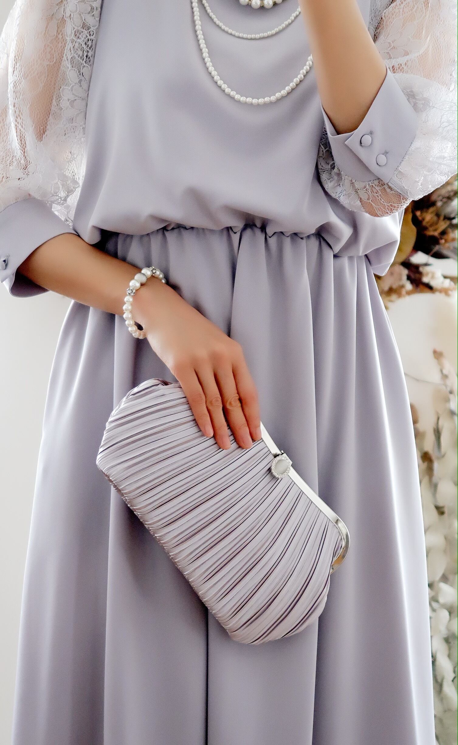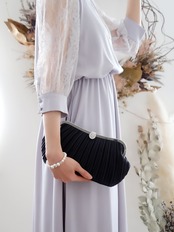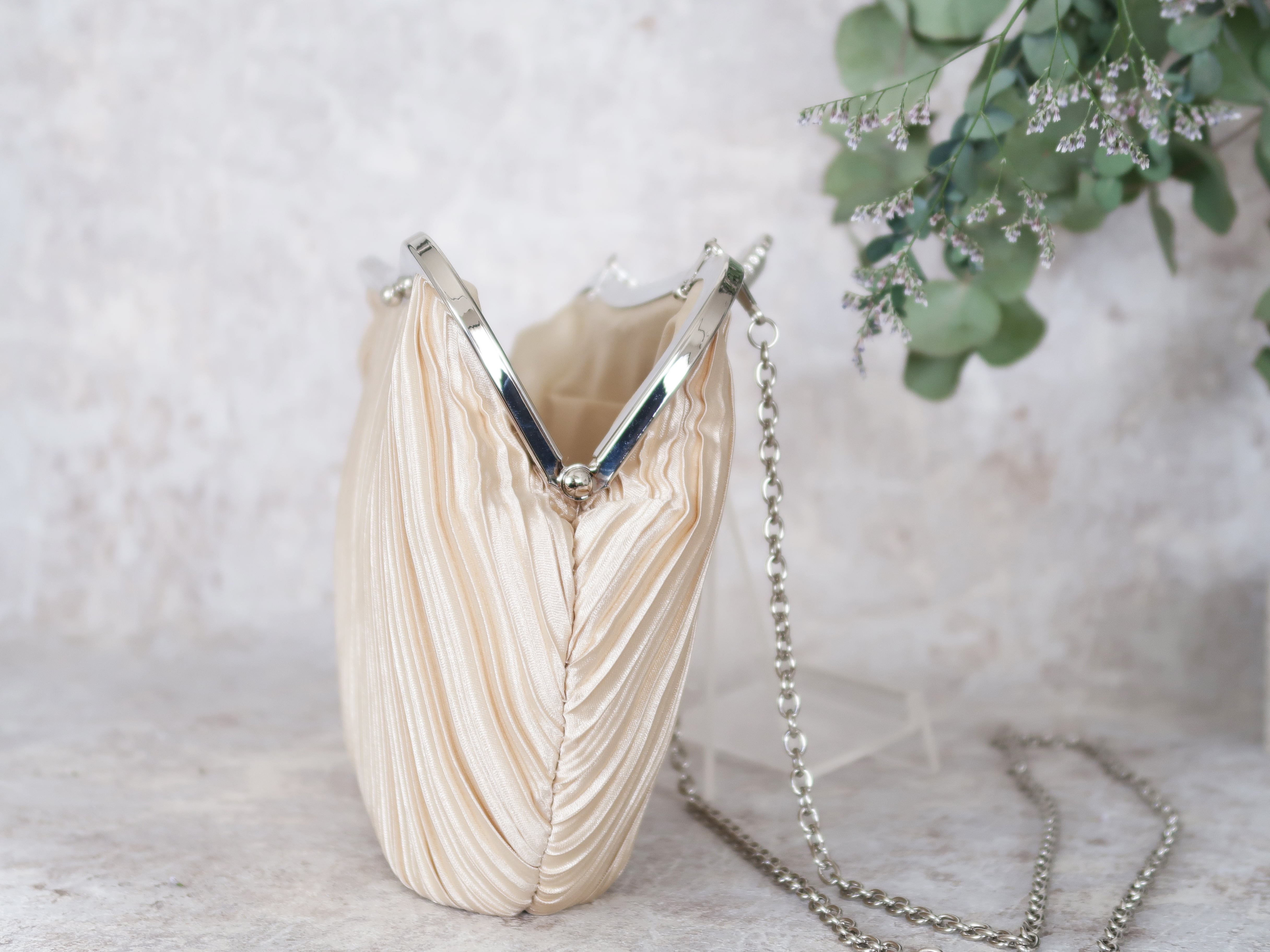 光沢のあるサテン地にプリーツが華やかな雰囲気を醸し出してくれます。