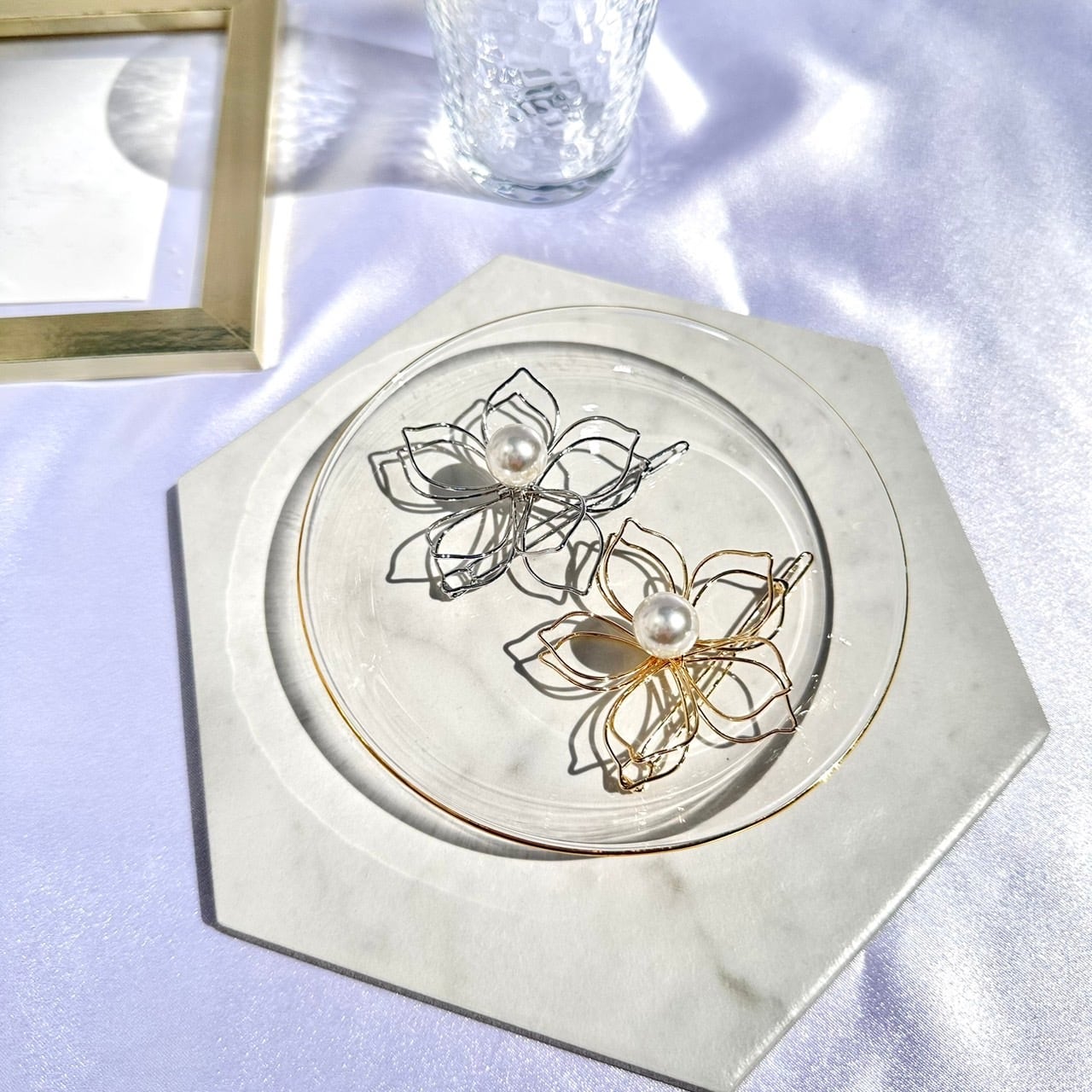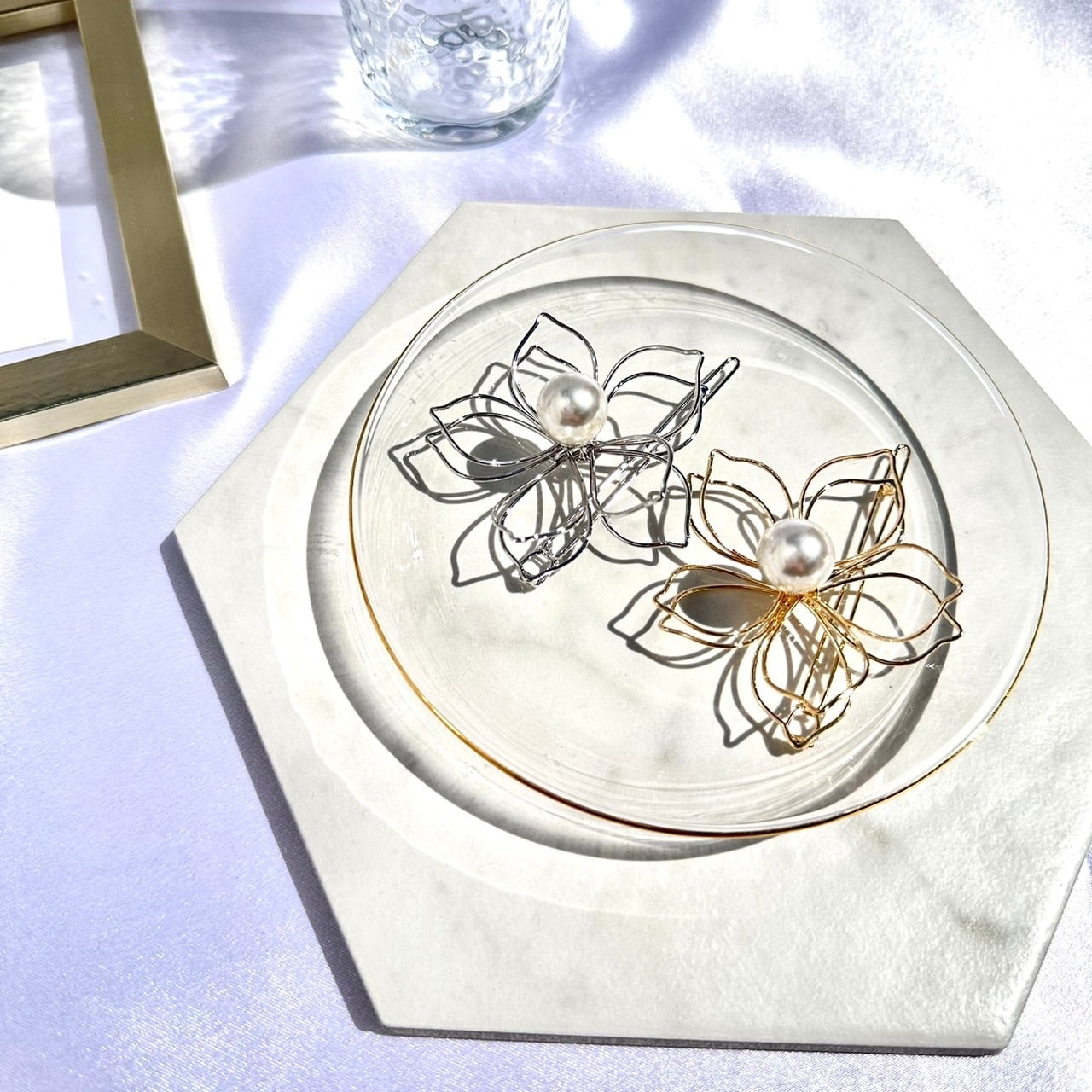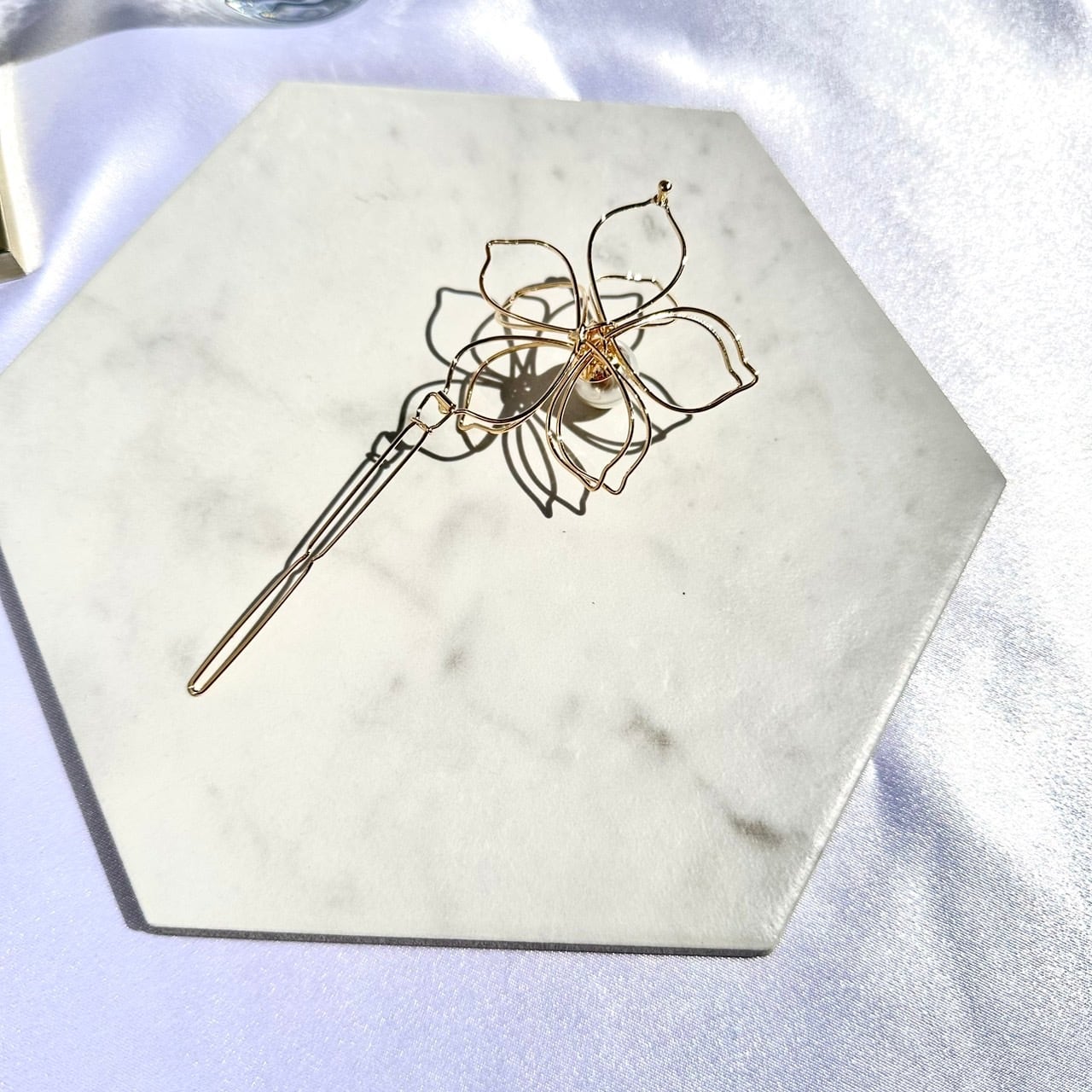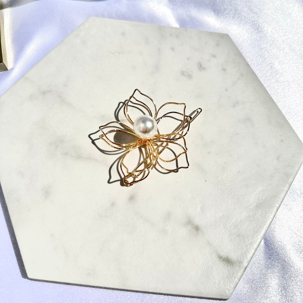 振り向かれる美しさと魅力的な表情を手軽に手に入れられる ビッグフラワーモチーフヘアピン。普段使いはもちろん、パーティーや結婚式の装いにもピッタリです。特別な日に、煌びやかな輝きを添えましょう。